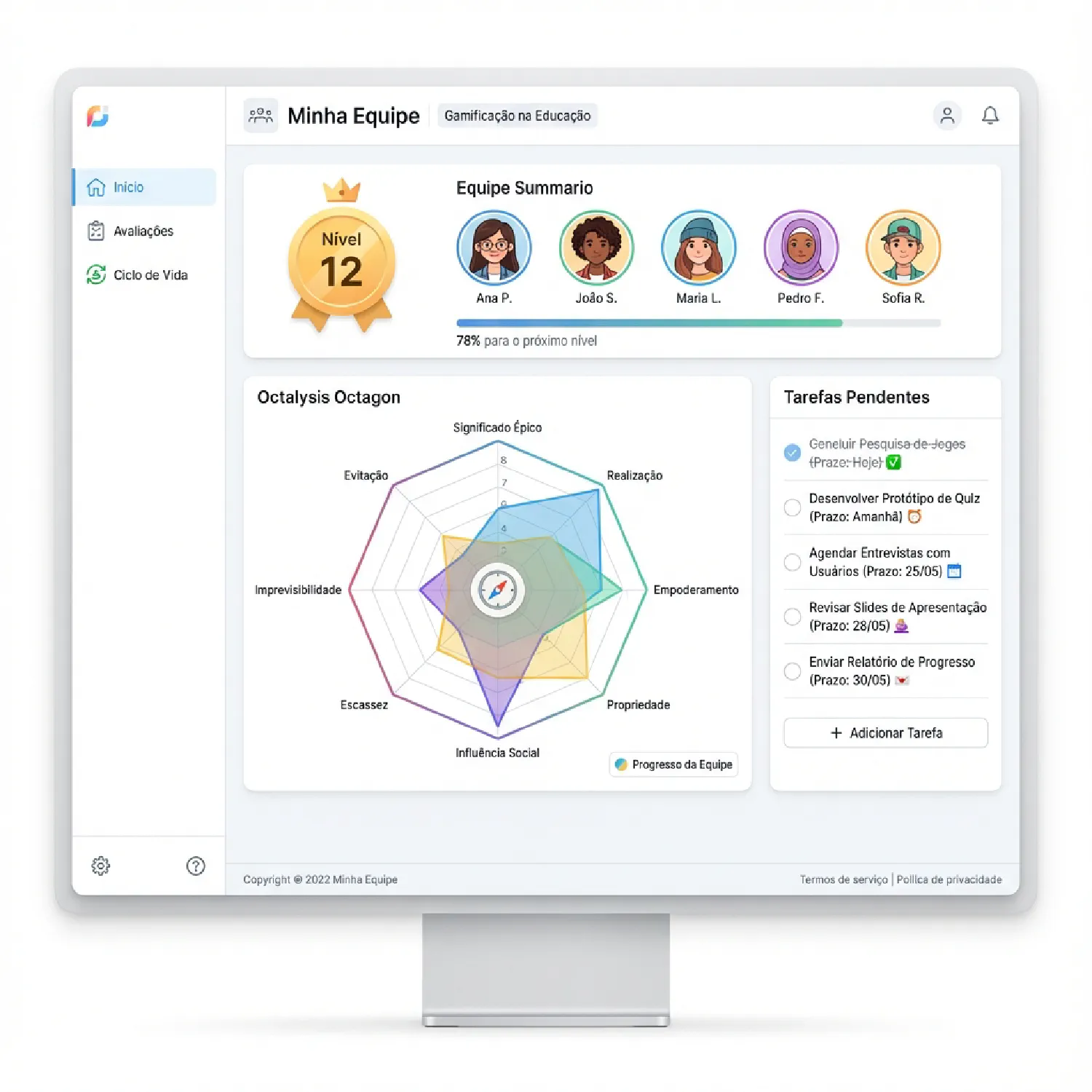 O OctaAnalysis é uma plataforma do Centro de Estudos, Desenvolvimento e Inovação em Software (CEDIS) desenvolvida para apoiar o design, a gestão e a análise de experiências educacionais e colaborativas gamificadas. Inspirado no framework Octalysis, o sistema organiza classes, equipes, projetos, avaliações e fluxos de comunicação em um ambiente digital integrado.